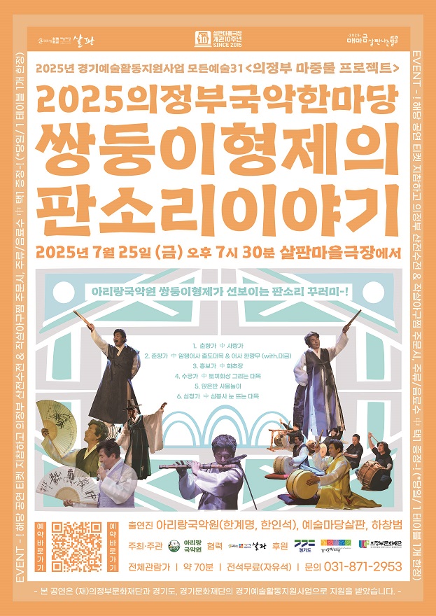 🧡 2025ÀÇÁ¤ºÎ±¹¾ÇÇѸ¶´ç-½ÖµÕÀÌÇüÁ¦ÀÇÆÇ¼Ò¸®À̾߱â 🧡 📍ÀϽà : 2025³â 7¿ù 25ÀÏ (±Ý) ¿ÀÈÄ 7½Ã 30ºÐ 📍Àå¼Ò : »ìÆÇ¸¶À»±ØÀå (°æ±âµµ ÀÇÁ¤ºÎ½Ã ½ÅÈï·Î258¹ø±æ 25, ÇØÅÂÇÁ¶óÀÚ ÁöÇÏ2Ãþ)